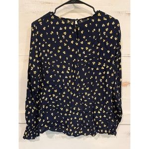 H&M Dark Blue Blouse with Yellow Flowers