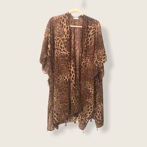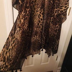 NWOT Leopard print sheer shawl. Hi low hem. Tassels on the bottom. New without tags. Cut size tag. Lightweight. Great for summer coverup or bathing suit coverup.
