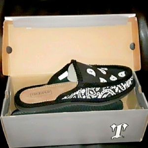 Super comfortable Trooper America Bandana slippers. Open back slip on. Size 9 mens 11 womens black with white
