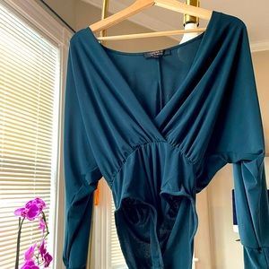 F21 Emerald Green Long Sleeve Low Cut Bodysuit