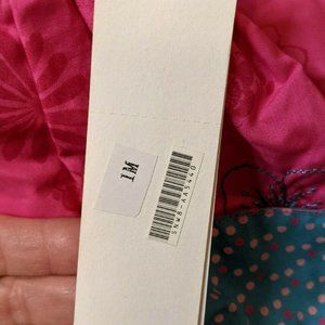 Babysen, size 1 month. New with tags. Adorable Japanese kimono style one-piece outfit, pink with blue patterned print, colorful embroidery.