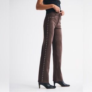 Medium wash unfinished hem with side slit. 3” inseam, 10” rise, 15.5” across waist, very stretchy. Worn a couple times, no damage