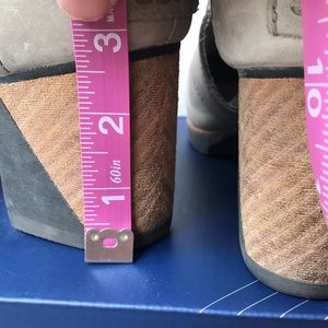 Very good condition. Treds don’t show much wear at all. Nonsmoking home. Elastic part is gray and the leather part is more of a grayish tan. Nonsmoking home