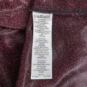 Long sleeves. 100% polyester tinsel entwined fabric that gives a glittery effect to the fabric. In multi-coloured colour block sections. Inner is lightly lined/backed with a smooth black backing. Fabric is not thick so not classified as a jumper.