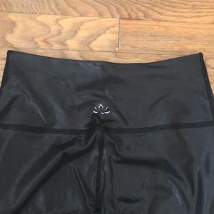 Incredibly cool shiny black material with flattering soft detail // barely worn and in great condition