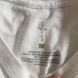 White, size medium. Great condition, sorry about the wrinkles in the picture!