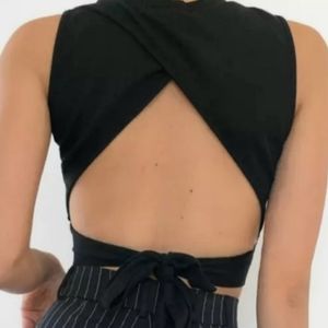 TOP BLACK TIE BACK OPEN BACK HALTER CROP TOP