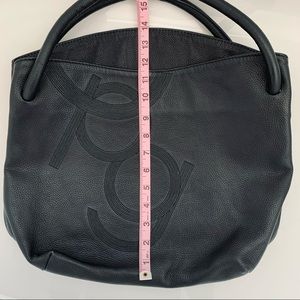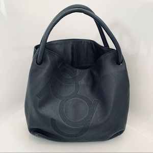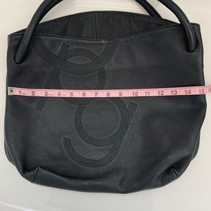 Purificación Garcia Leather Hobo Bag. Black. This bag is a quality staple piece for any wardrobe! It has a subtle embroidered "PG" logo the front and a small, gold "PG" logo on the back. The there is one interior zip pocket, and the lining is perfectly in tact. There is a bit of separation within one straps. You cannot see this from the outside but can feel it when holding the bag. I've included a photo to show where. Otherwise, this bag is in EXCELLENT condition with very little wear!!