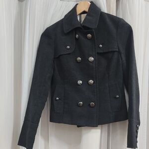 Pretty pale/pastel but playful finish on a slightly oversized denim jacket. With a spread collar and rollable sleeves. NWOT