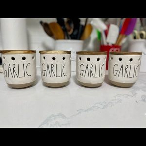 RAE DUNN “GARLIC” KEEPERS— 4 on hand—NEW/NEVER USED. will package carefully before shipping.