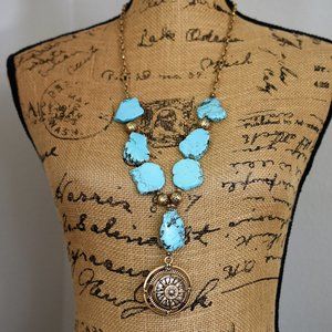 This beautiful necklace features our iconic compass and turquoise color magnesite stones.