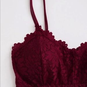 Burgundy Floral Lace Longline Bralette