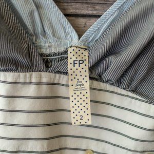 [Free People Blue Striped Sleeveless V-Neck Ruffle Dress]