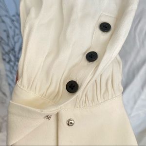 Tags: ba & sh BA+SH lady blanc robe solid plain pointed pointy fold down collar buttoned up full knee length maxi midi circle a-line fit and flare medium m 0
