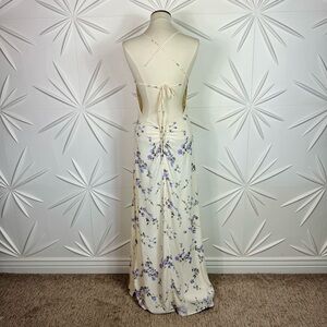 Flynn Skye Saturdaze Dress in Lavender Skye Featuring a low back with rouching detail, double lined at the bust, lower part of maxi somewhat see thru by nature of the color. However, nude color under garments make that an easy fix. Adjustable tie closure & hidden back zipper. Soooooo Pretty💜
