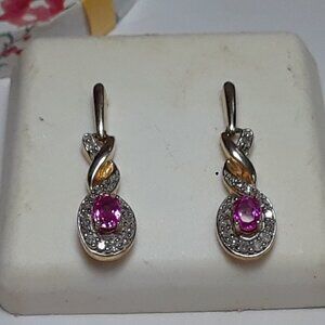 .60ctw Oval Pink Topaz &Diamond Drop Twist 10KT Y/Gold Screw Post Earrings#19995