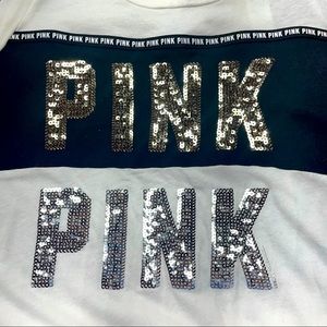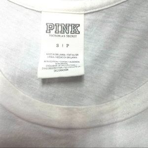 Victoria’s Secret PINK white muscle tank top, sz S. Sequin logo detail in gold and silver. Cotton/polyester blend. Machine Wash. Excellent condition with zero stains or flaws.