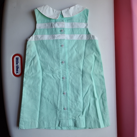 Tommy Hilfiger dress in a textured light seafoam blue/green and white contrast detailing.