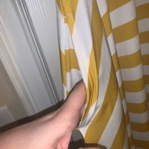 NWT Lularoe Nicki sleeveless dress. With pockets. Size medium. White and mustard yellow stripes. Slinky material. From a smoke and pet free home. Cross posted.
