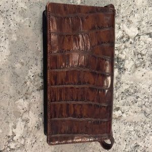 TUSK brown crocodile print crossbody 8 inch wide, 4.5 inches tall, strap included with adjustable buckle