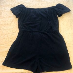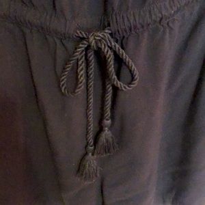 Excellent condition. Size M. Black LOFT Outlet off the shoulder romper. Rope tie around waist with tassels. Pockets on each side of romper. Absolutely adorable on!