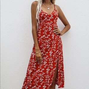 Boho floral print side slit cami dress