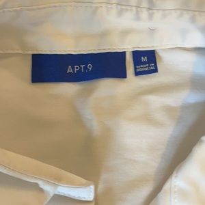 Never worn white button down shirt size M. Wrinkles because it was in a bag for awhile, easily can be taken out