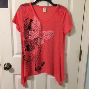 FREE WITH ANY PURCHASE Coral Shark Bite Graphic Butterfly T Shirt M