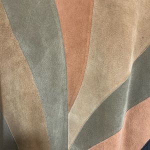 Retro ‘80s suede jacket with leather trim. Beautifully lined and in good condition featuring pockets and has built-in shoulder pads. Made by Dreske-Somoff Australia (leather specialists still operating in Perth,WA). Dry clean-only, some small marks on suede.