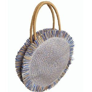 Circle woven basket fringe tote bag