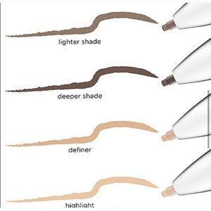 Define & highlight your brows with this 4-in-1 contour pencil. Our multi-tasking brow pencil features a lighter brow shade, deeper brow shade, edge definer and arch highlighter to create clean, shaped brows with depth & dimension. Turn shapeless, flat brows into defined, contoured brows in an instant. Available in 5 shades for a wide range of hair colors and skin tones!