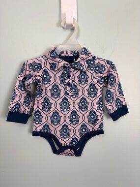 This romper is brand new with tags and has never been worn. This romper is a bright coral color. It is brighter than shown in the pictures. This romper is a size 12 month. It has cap sleeves, snaps at the crotch, eyelet detail and is 100% cotton. Message me with questions!
