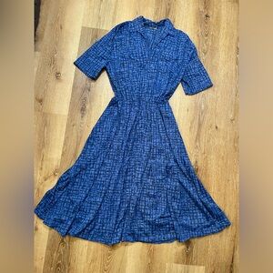 Super cute and comfy tea length dress from Lindy Bop. Fabric is stretchy and bouncy. Built in slip. Lovely details. Marked a size XS but fits more like a small. Tags have been removed since original listing, but I left the photo for size info purposes.