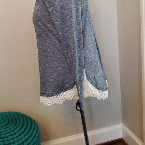 Lightweight long sleeve shirt..beautiful lace detail around bottom hemline & crisscross design in back of neck.
