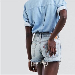 Women’s vintage Levi shorts. RARE find, classic denim fit, high waist, button closure, heavily distressed worn in feel. Size W34 L 32