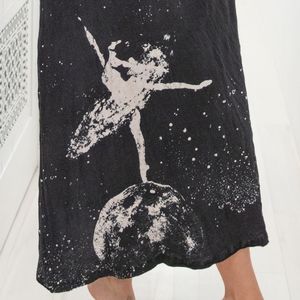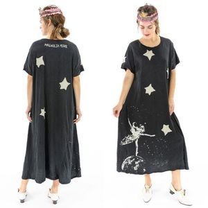 Brand new with tag! Cosmic Ballerina Tee Dress 711 T boyfriend cut in Midnight charcoal gray black with applique stars & dancing Ballerina on the moon graphic by Magnolia Pearl. One Size. All MP items are heavily distressed w/ intentional holes, bleaching, fading, pilling, sandblasting, fraying, ripped fabric, paint splatter stains, patches, raw cut-up hemline, so they look faded, vintage & threadbare. No trade please. Price is firm & reflects high % posh fees, above retail price I paid, rarity.
