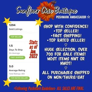 Fast Shipper! Orders ship Mondays/Thursday/Saturdays- shipped USPS Priority Mail | 700+ 5 Star Ratings! | Top Rated Seller! | Posh Ambassador | Thanks for shopping my small business!
