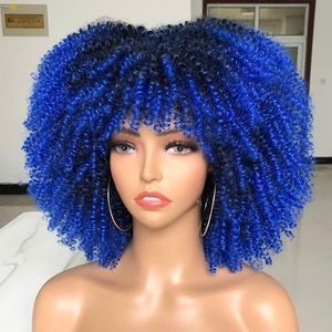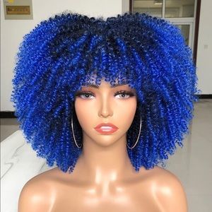 Hair Color: Black Ombre Electric Blue curly afro wig