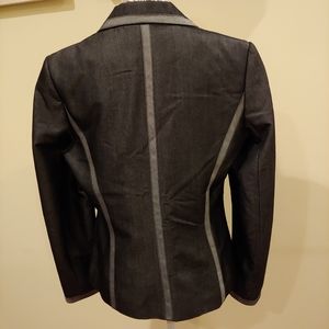 This chic black denim look Lena Gabrielle New York blazer with accented piping is perfect with your favorite dress, jeans, leggings or skirt.