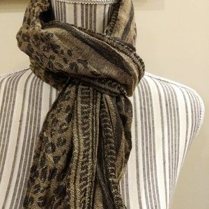 Soft Black and Antique Gold Leopard Print Scarf. Approximate measurements: 26" x 64"