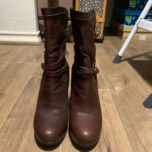 Used great condition UGG dark brown leather heeled boots size 8