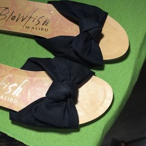🖤Brand new with a box black blowfish slide sandals for women super cute have a bow on the top. Slips on easily I only have one size so far check back though!!!🖤😊