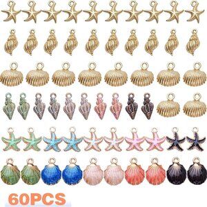 60pcs Alloy Ocean Starfish Seashell Conch Charms Colorful Enamel Ocean Life Sea