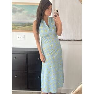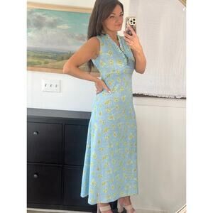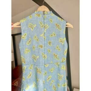 60’s 70’s D Lang Fashions ILGWU Blue Paisley Ruffle Neck Maxi Dress
