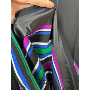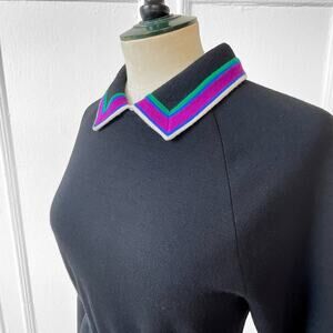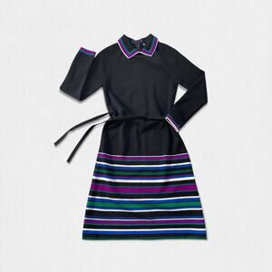 60s 70s Knit A-Line Dress Stripes Collar Same Fabric belt Raglan Sleeve Size 8