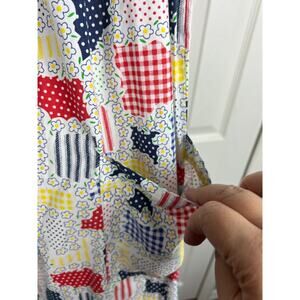 60s 70s Radlee Medium Patchwork White Floral Snap Front House Coat Dress