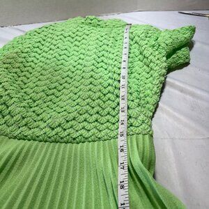 60s 70s Vintage Green Lace Bodice Dress with Permanent Pleated Skirt Belted XS