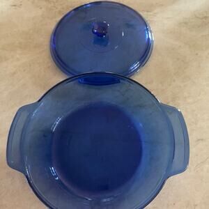 60’s Anchor Hocking cobalt blue glass round covered casserole
