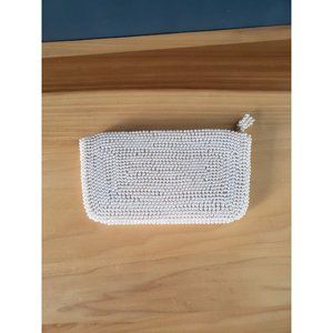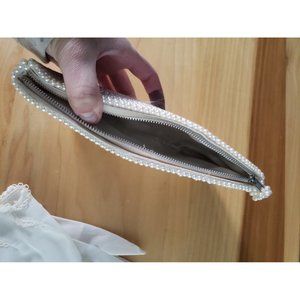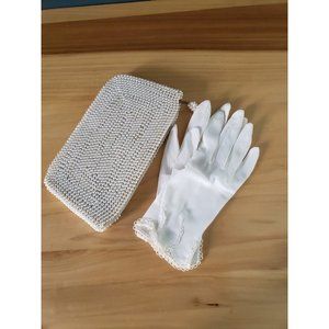 This beautiful purse is in excellent condition and is covered with faux pearls and includes a set of size small gloves.