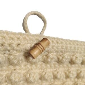 60s Crochet Cord Popcorn Pattern Beige Hand Bag Maxi Clutch Wooden Toggle Purse